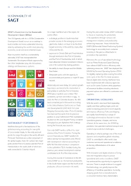 SUSTAINABILITY PERFORMANCE one of Sri Lanka’s key trading partners. optimizing resources. SAGT has deployed the
